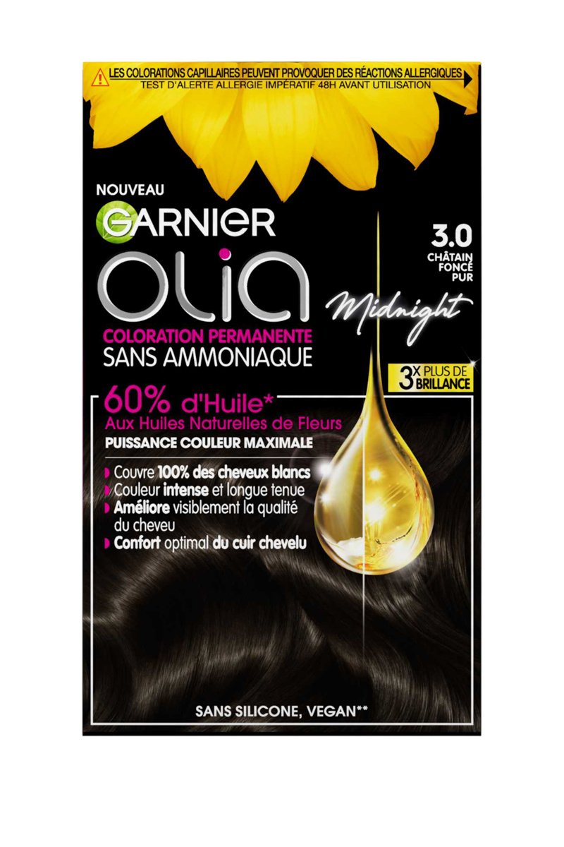 Coloration permanente Olia - N° 3.0 châtain foncé pur - 986 ml