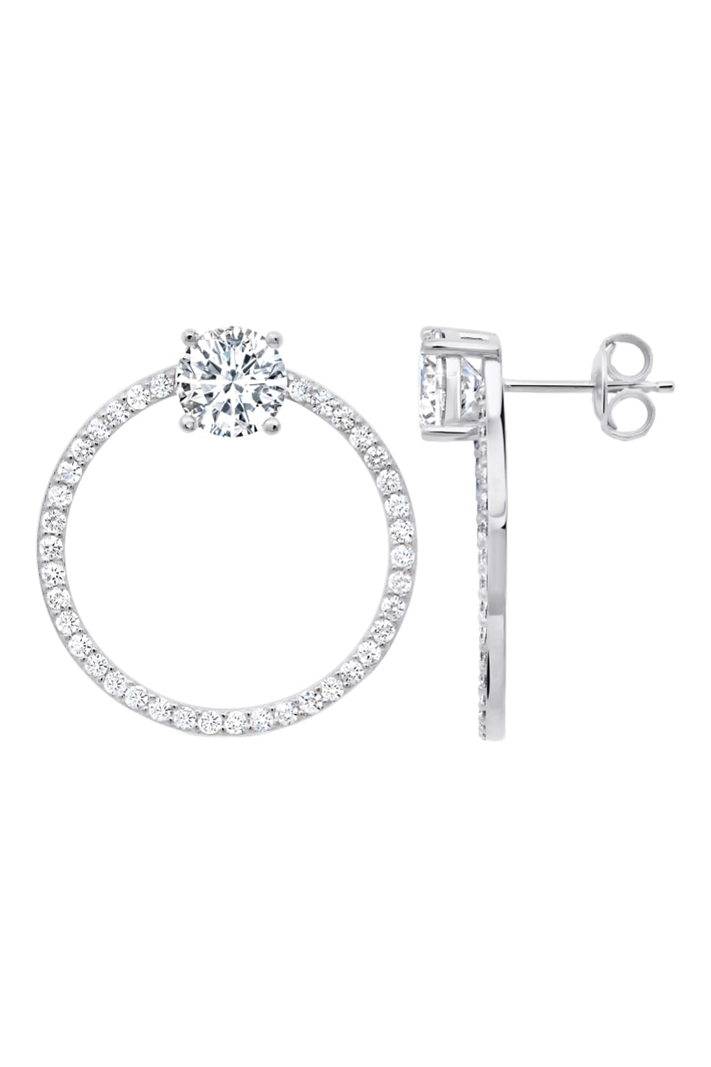 Créoles en argent plaqué platine serties de zircons cubiques.