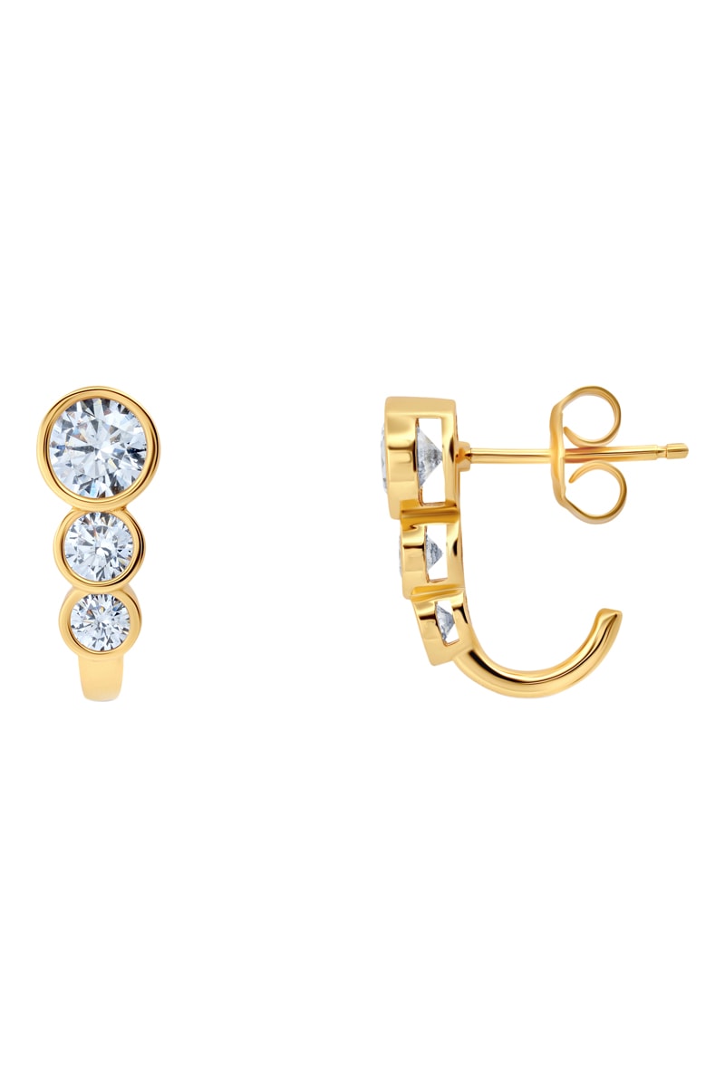 Puces en argent plaqué or jaune serties d'oxydes de zirconiums.