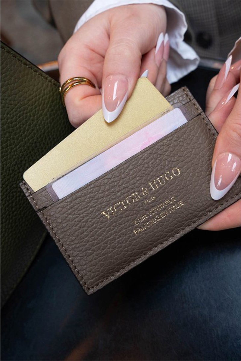 Petit porte-cartes avec un compartiment principal au milieu et des poches latérales pour organiser les cartes.