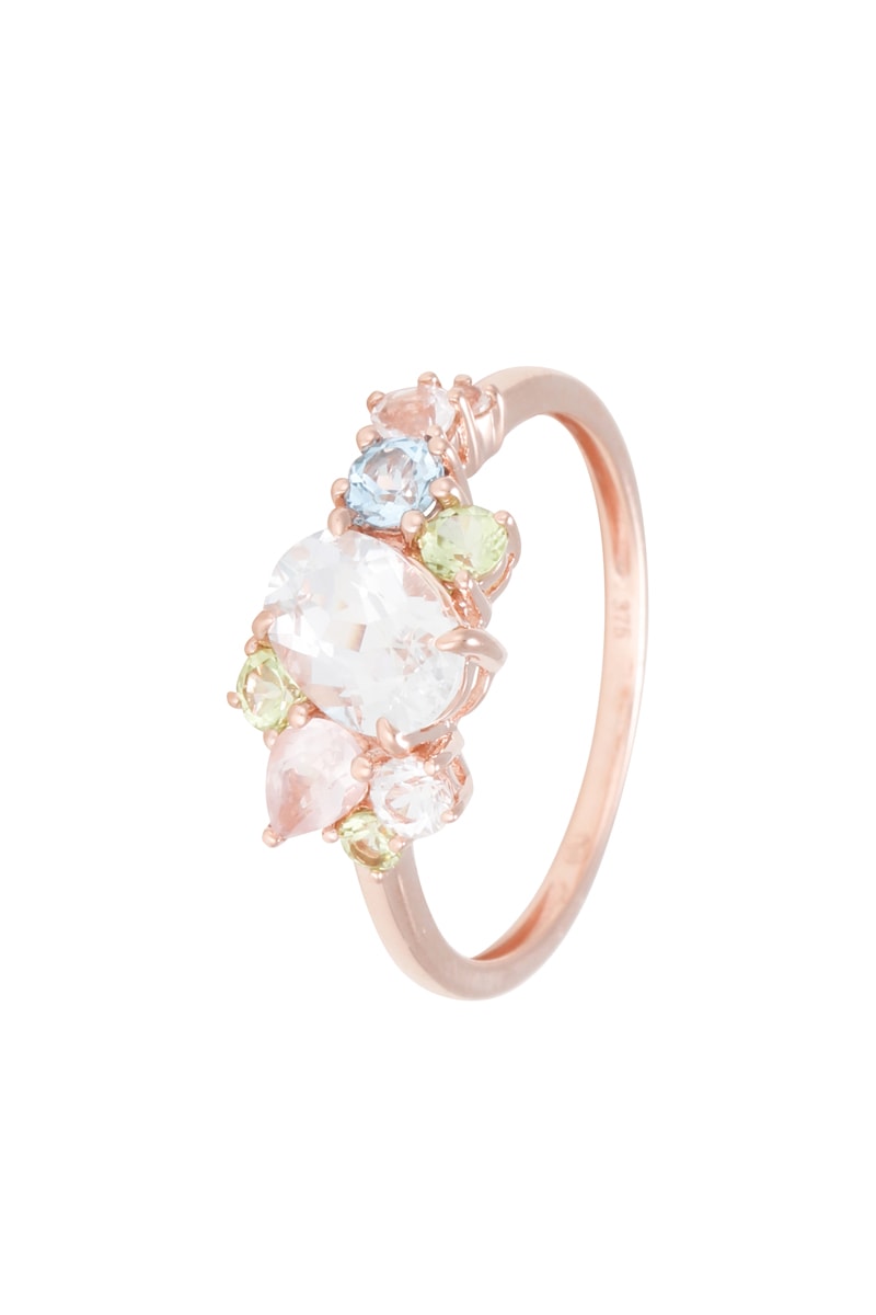 Bague en or rose sertie de 4 topazes, de 3 préhnites et de 2 quartz.