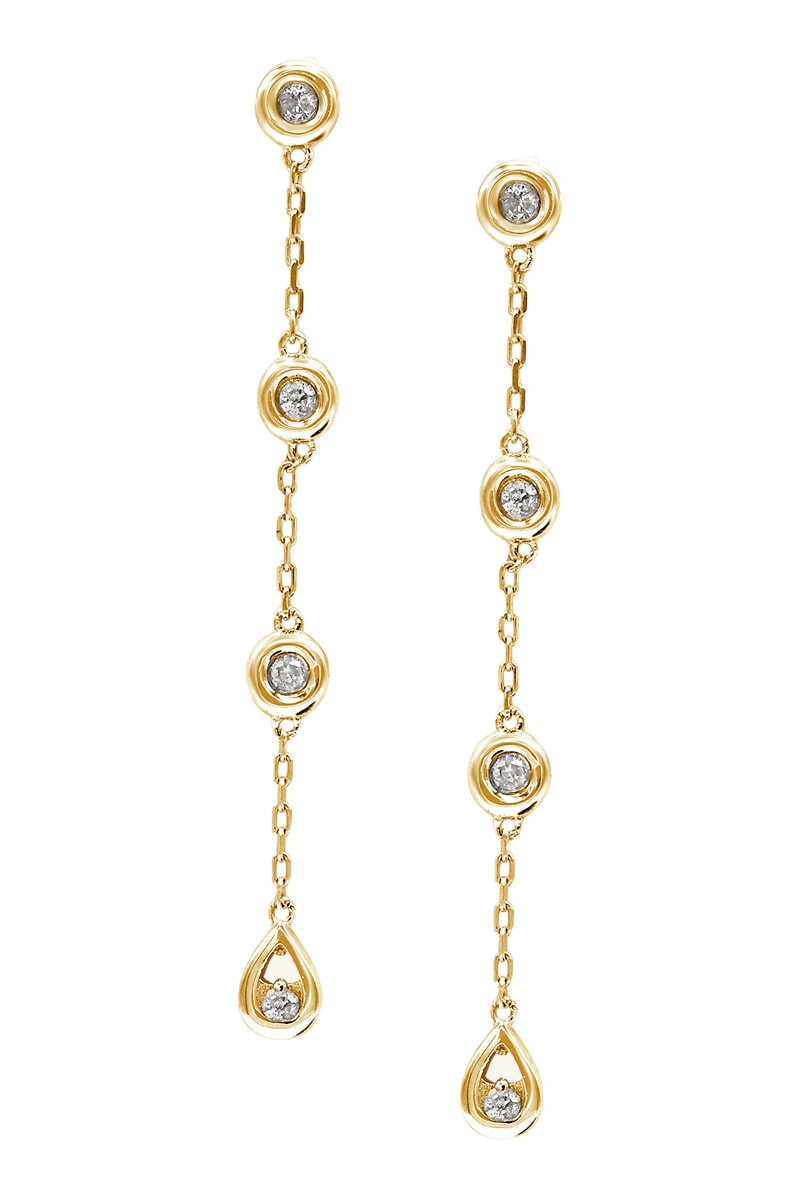 Boucles d'oreilles pendantes en or jaune serties de 4 diamants.