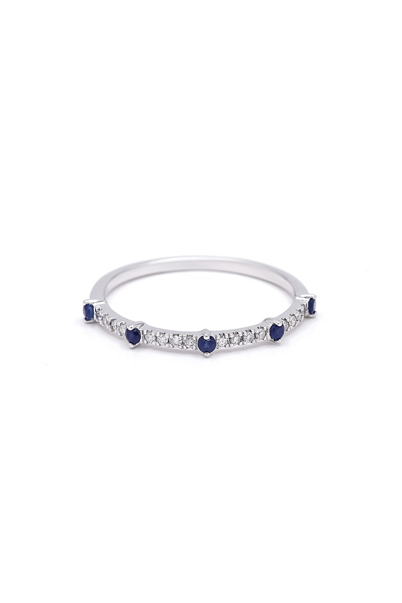 Bague en or blanc sertie de 16 diamants et 5 saphirs.