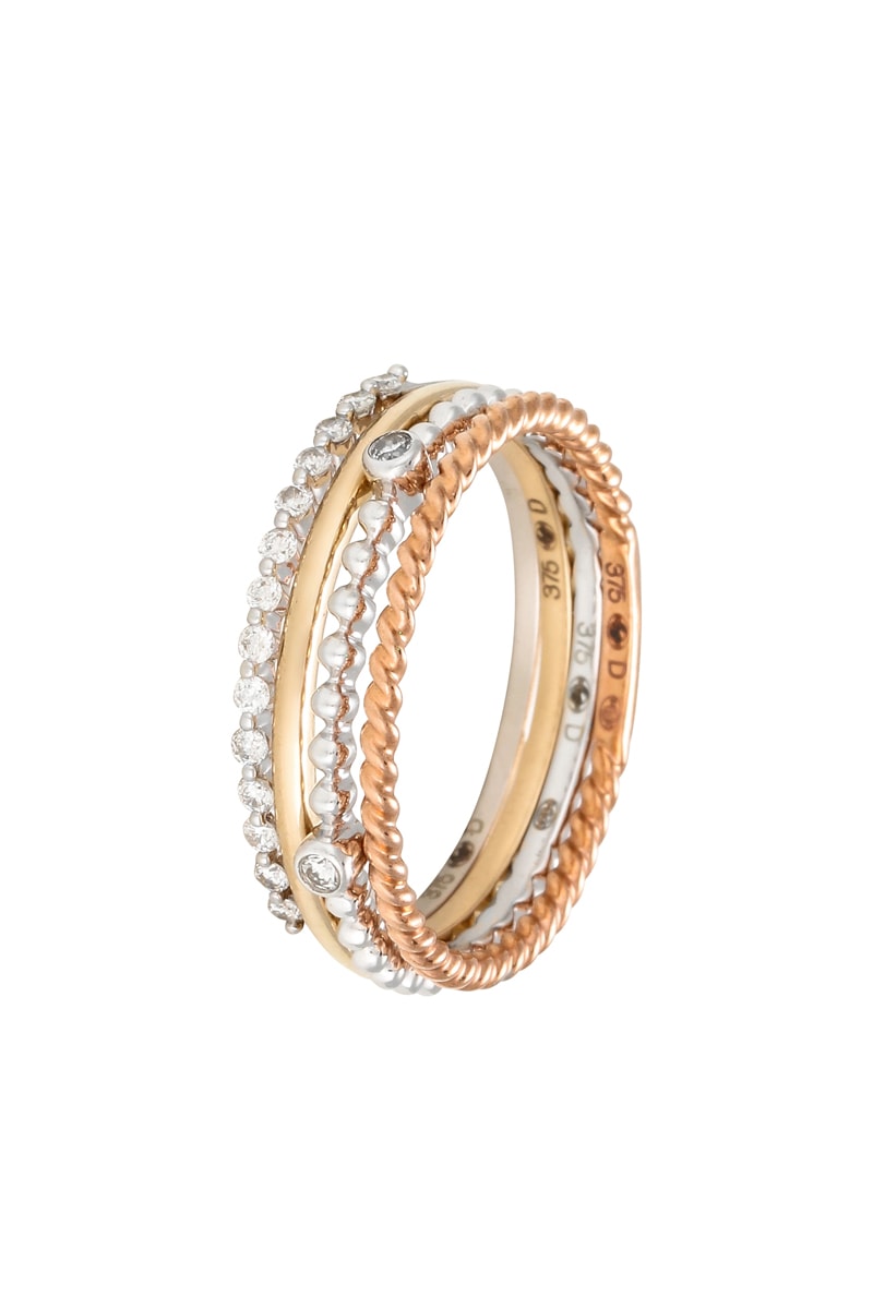 4 bagues - Or jaune, or blanc, or rose et diamants