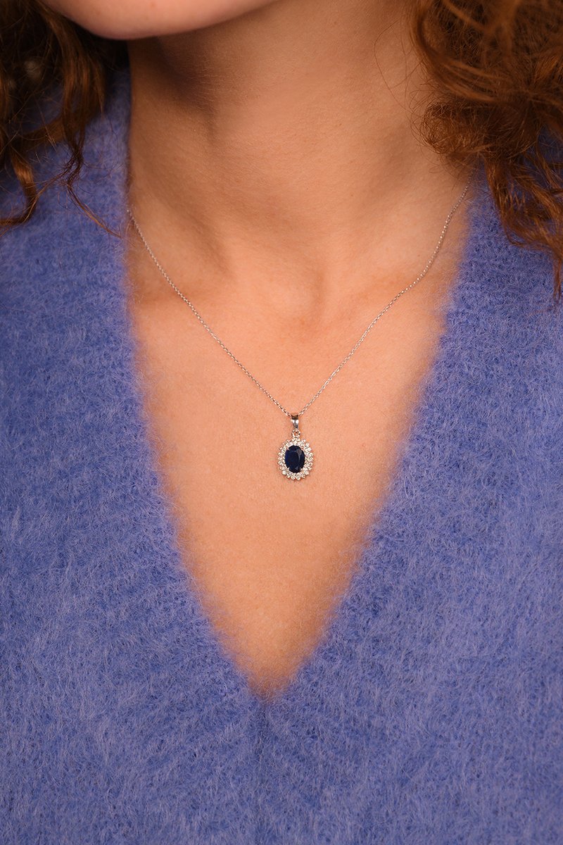 Pendentif Soleil bleu - Or blanc, saphir et topaze
