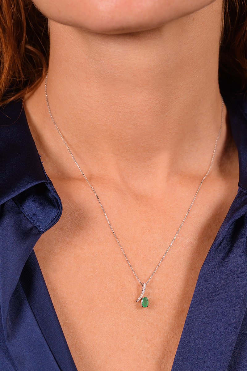 Pendentif Belle Emeraude - Or blanc, diamants et émeraude