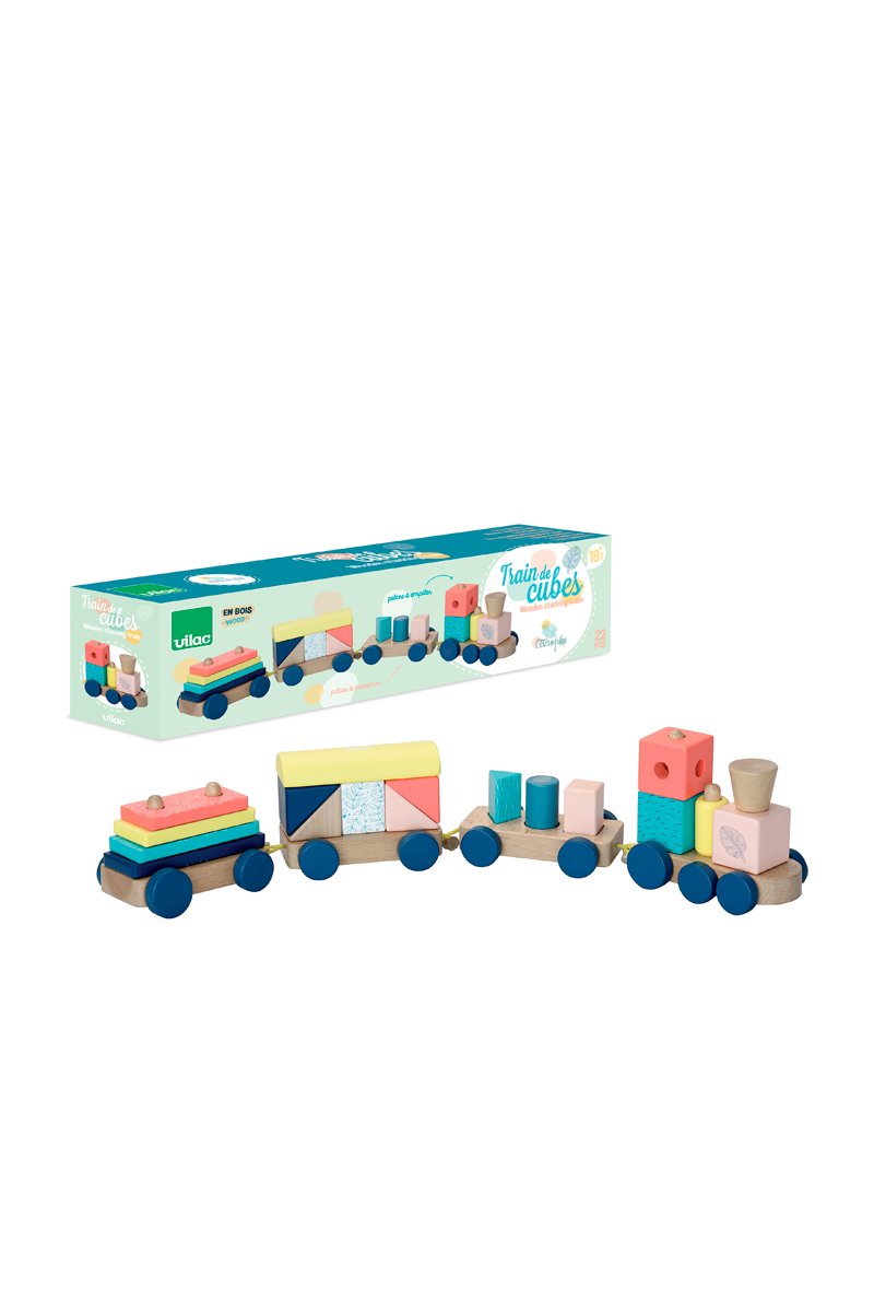 Train de cubes en bois.