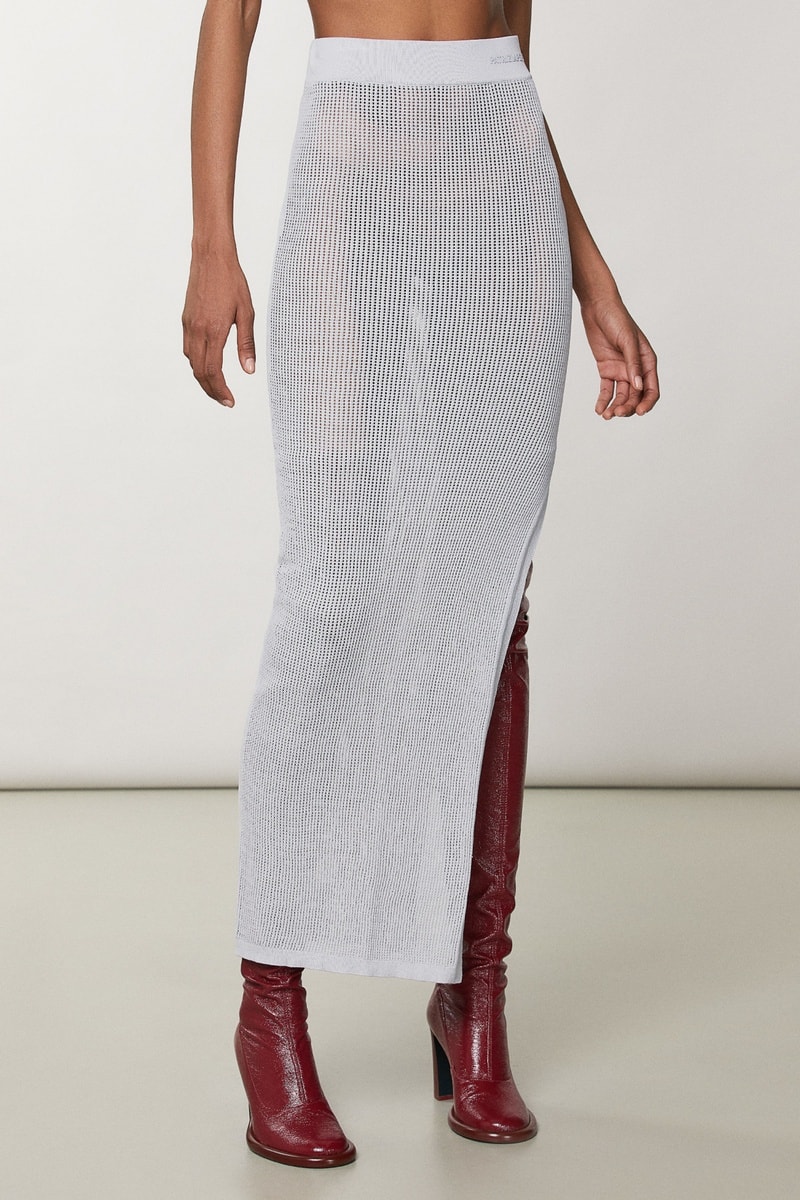 Jupe longue en maille ajourée.