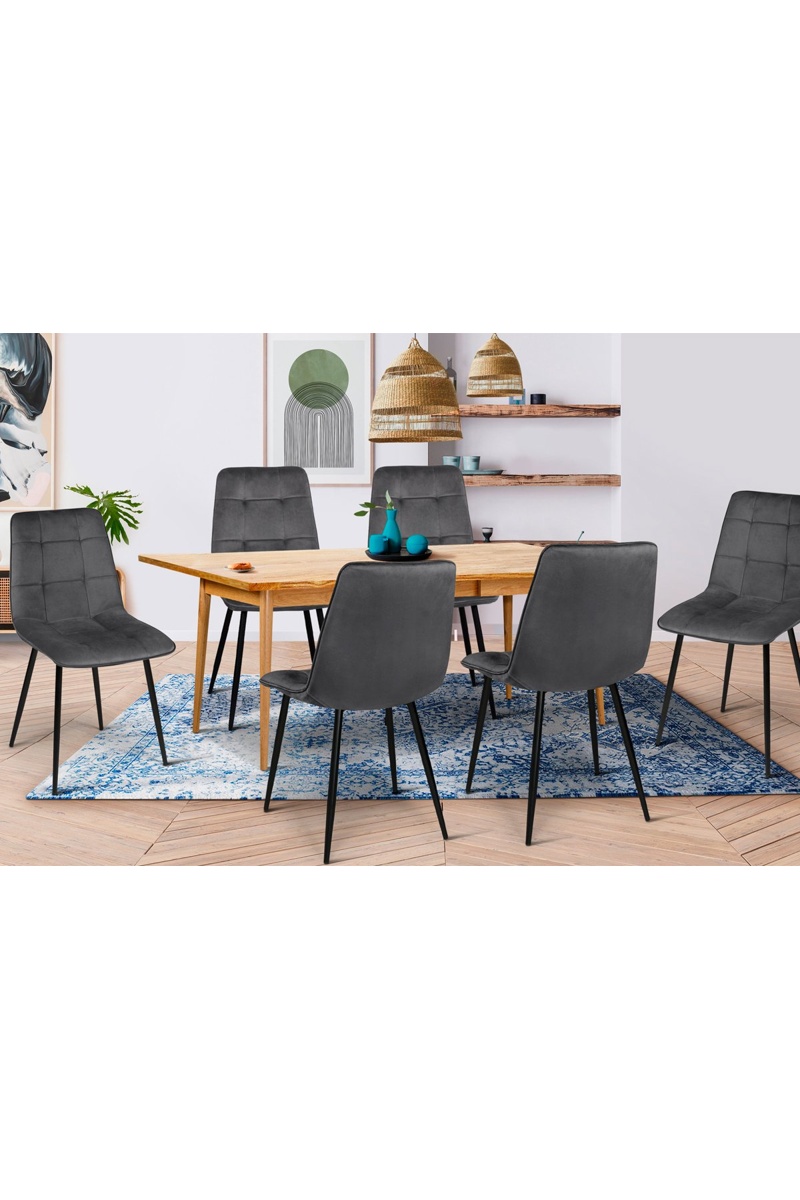 Chaises Linda en velours gris foncé et pieds métal noirs - lot de 6