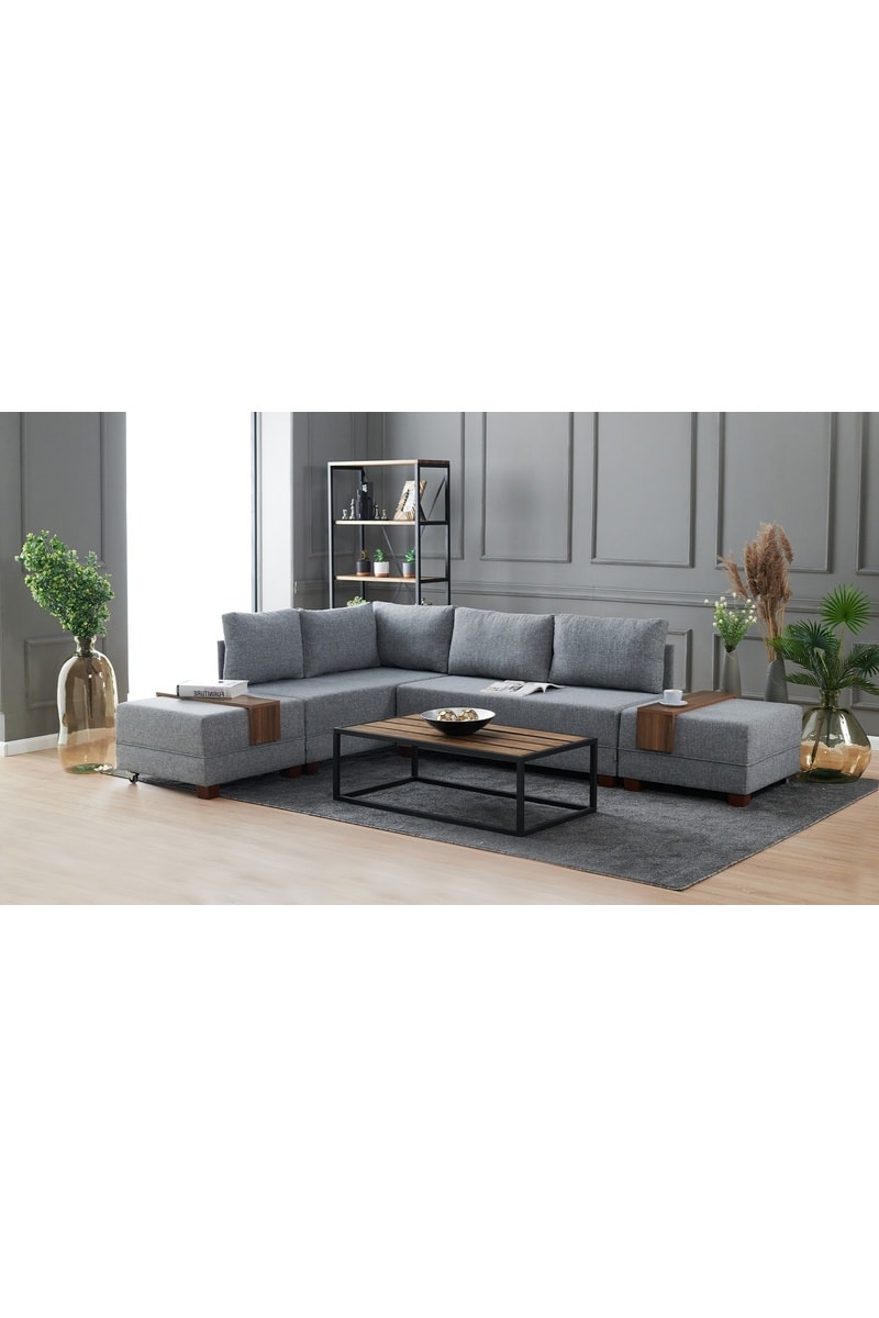 Canapé d'angle gauche convertible Fly - Gris et imitation noyer - 4 places