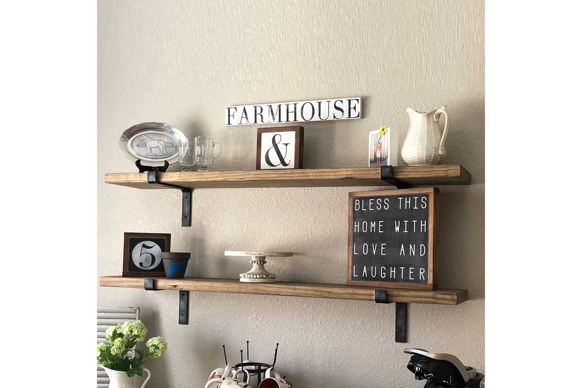 2 étagères murales en bois - 60 x 14 x 16 cm