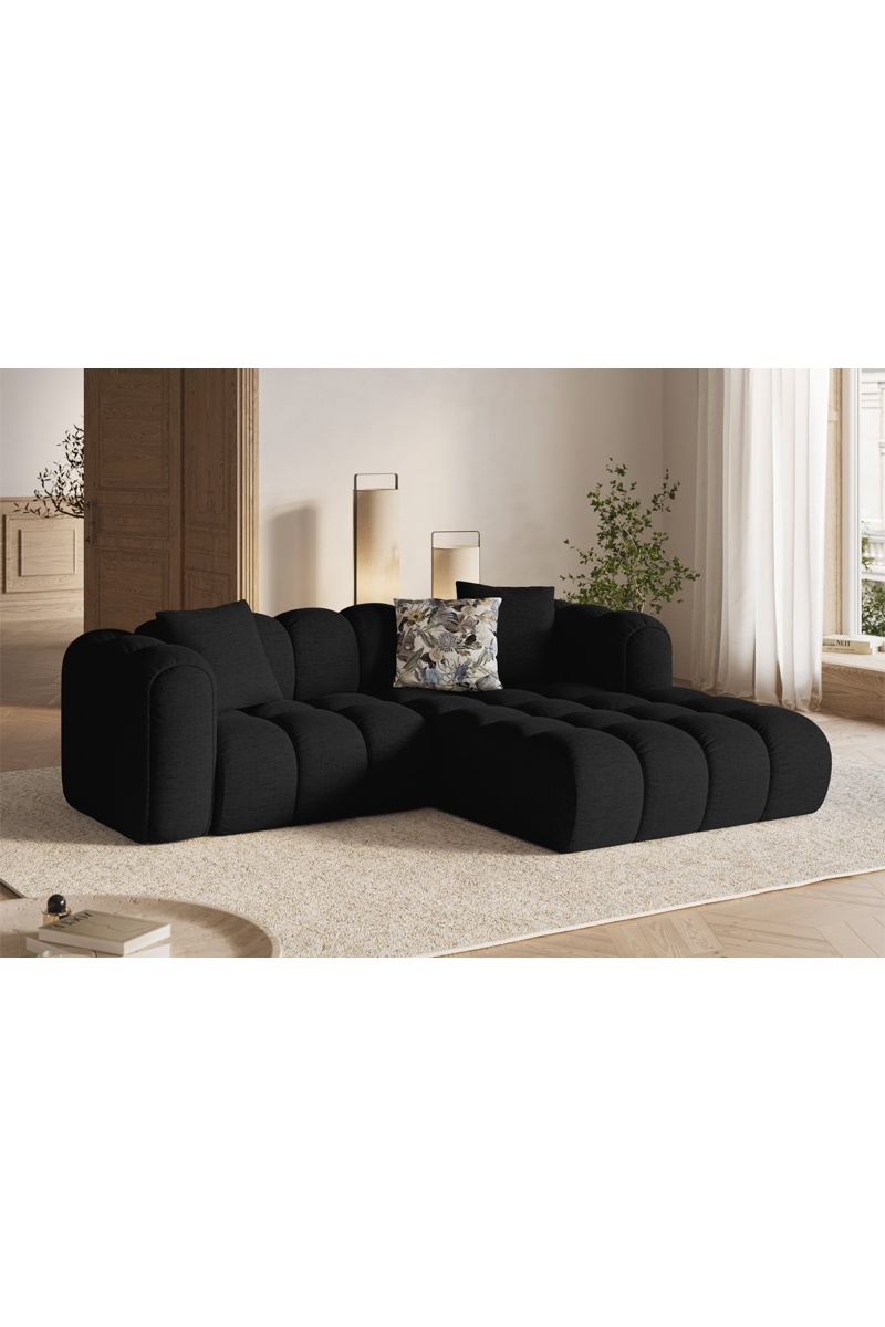 Canapé d’angle droit modulaire Elise - Noir - 3 places - En tissu chenille