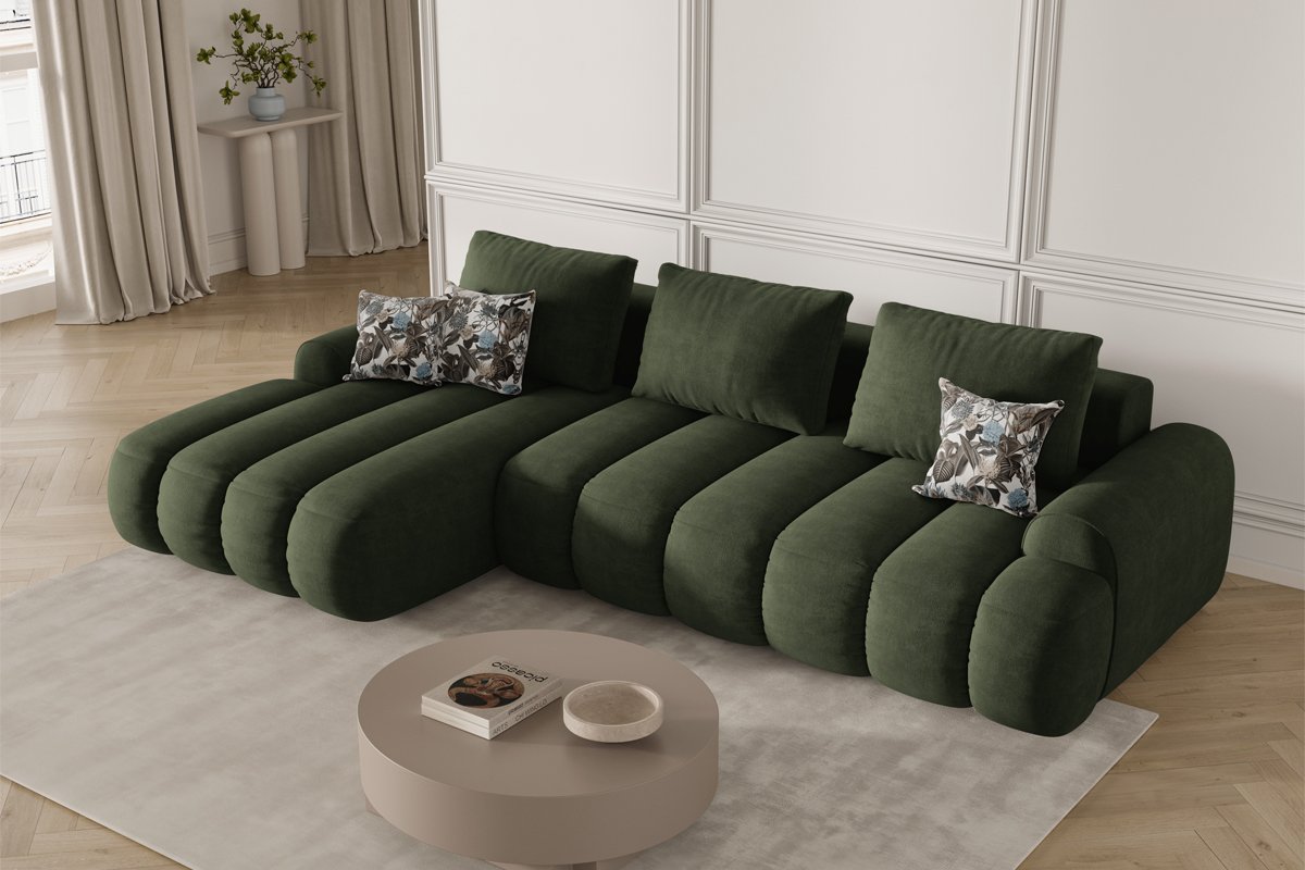 Canapé d'angle gauche convertible Simona - Vert - 3 places - Toucher velours