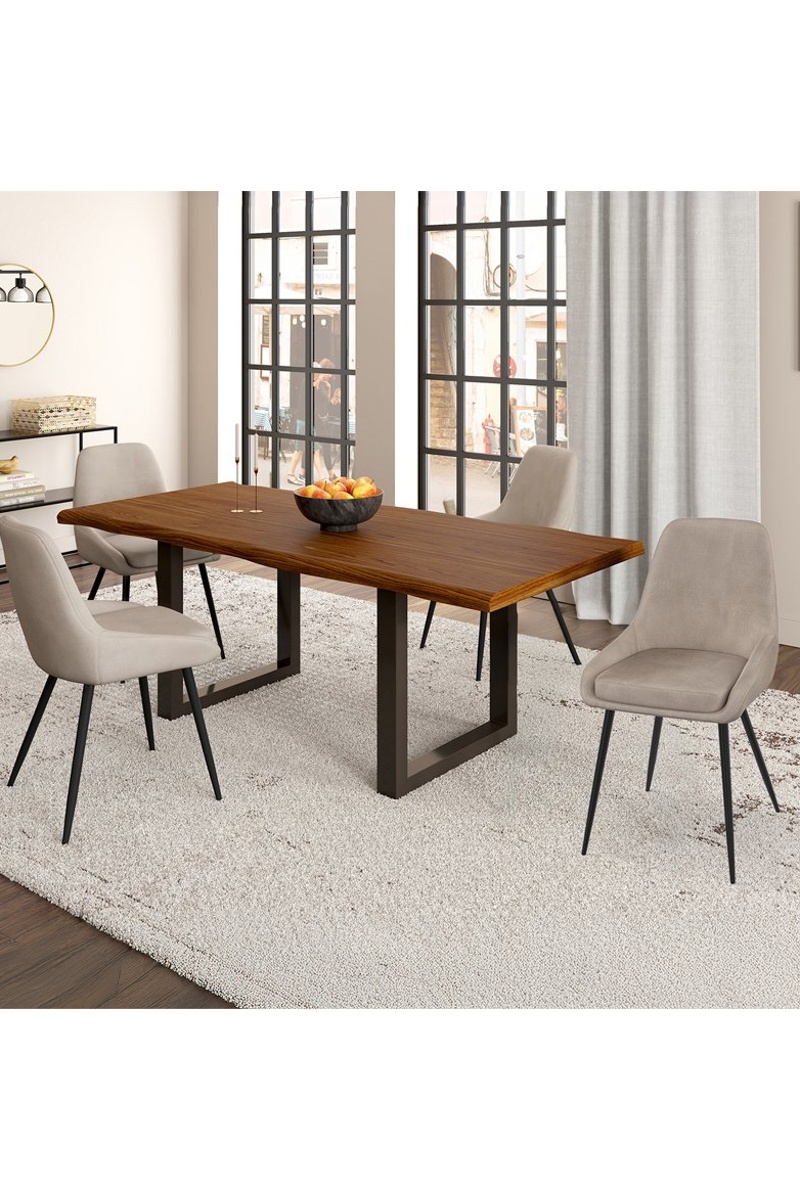 Chaises Olivia en velours taupe et pieds métal noirs - lot de 4