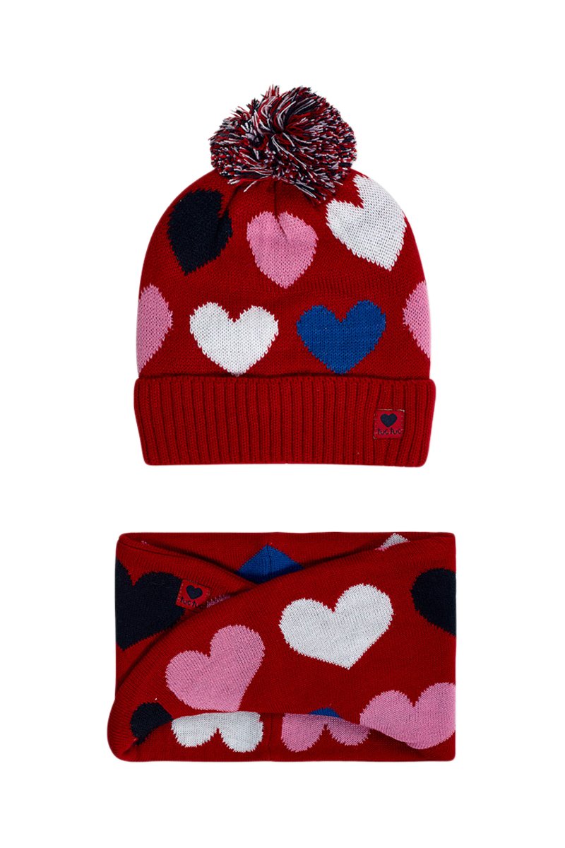 Bonnet à pompon et snood - Rouge
