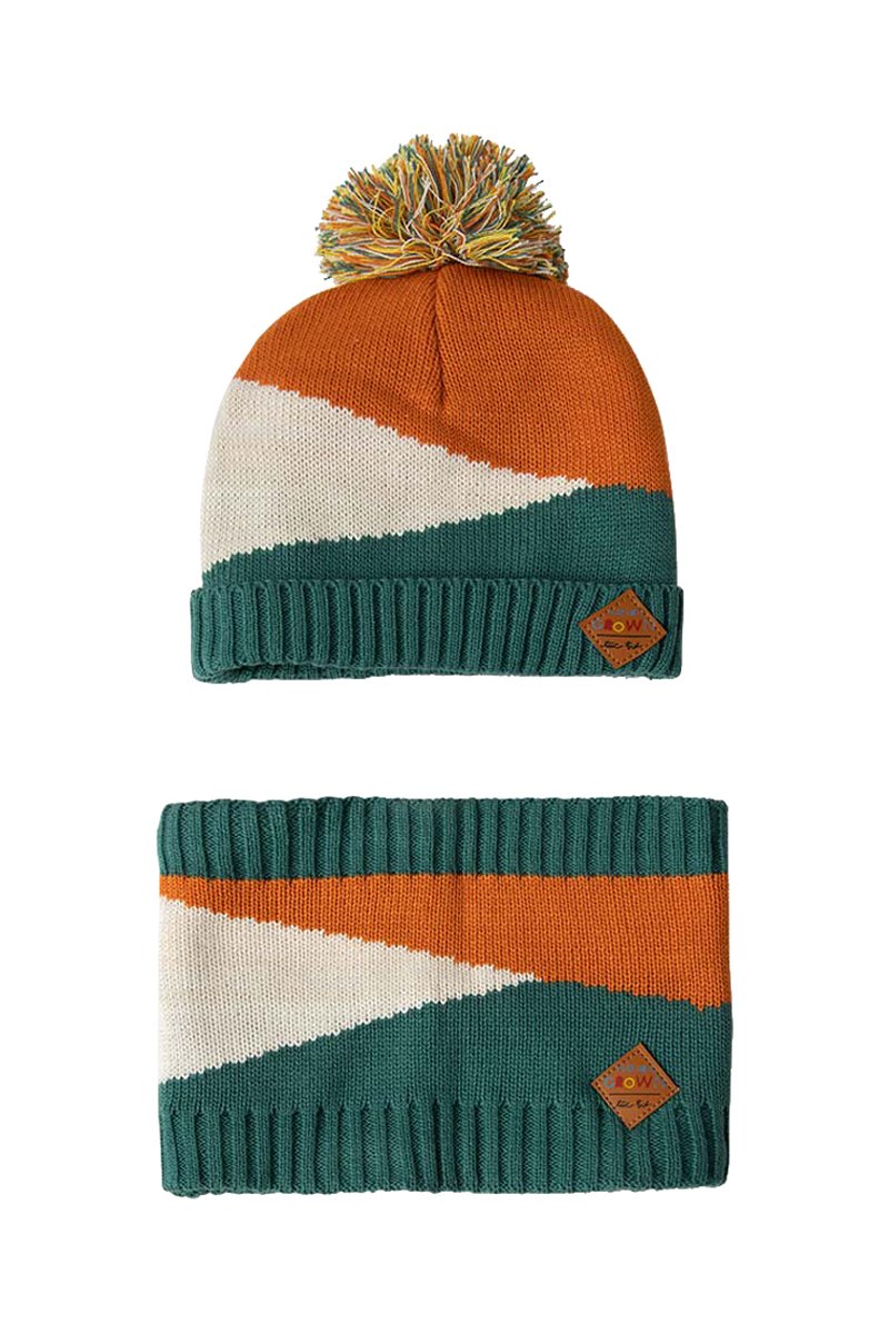 Snood et bonnet - Orange et vert
