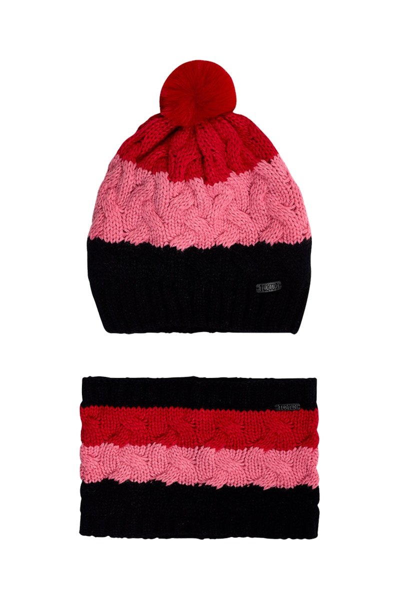 Bonnet à pompon et snood - Rose