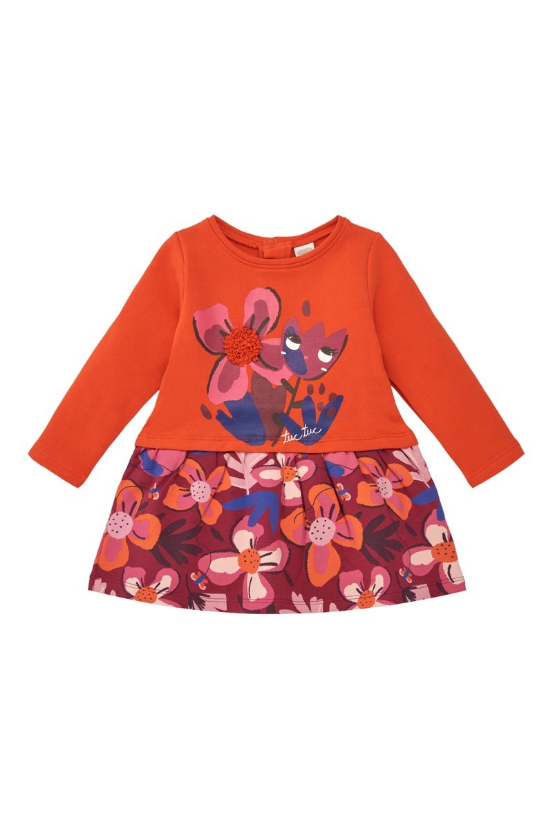 Motifs fleurs devant et sur la jupe.