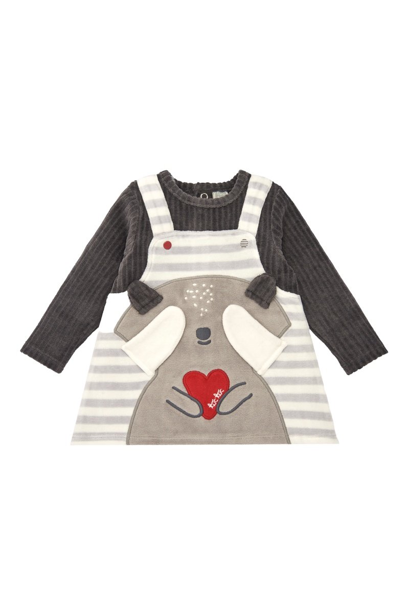 Motif raton laveur et cœur brodé, empiècements forme oreille et boutons décoratifs devant.