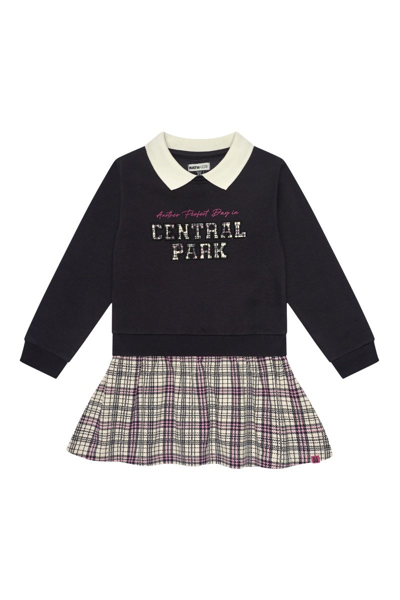 Motifs à carreaux, fronces et empiècement avec logo sur la jupe.