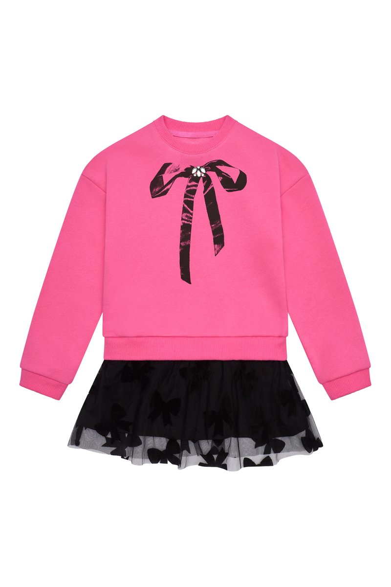 Volant en tulle à motifs nœuds en relief sur la jupe.