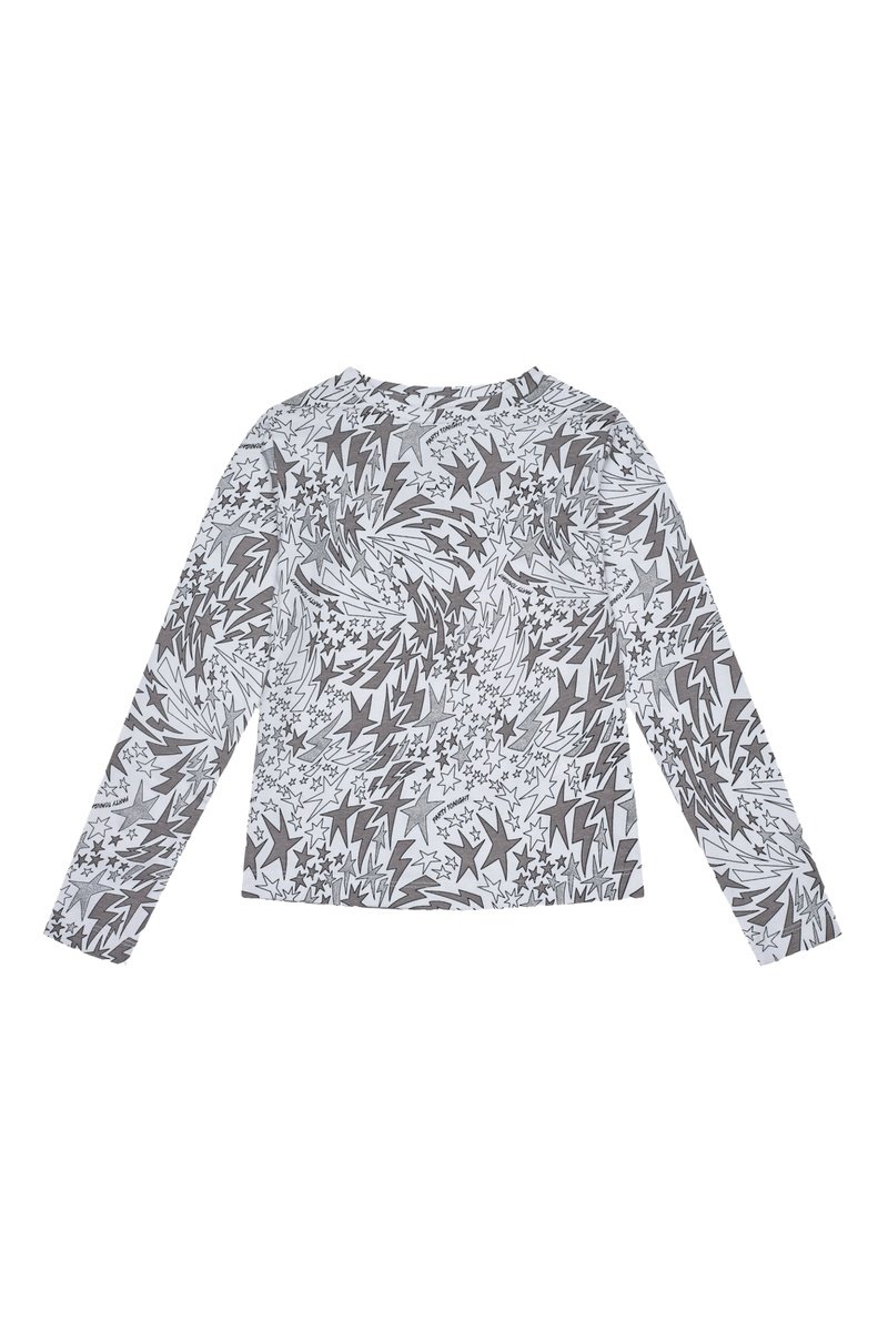 Lettrage et motifs étoiles et éclaires.