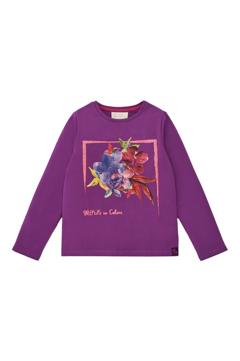 Lettrage, motifs fantaisie et empiècement avec logo devant.