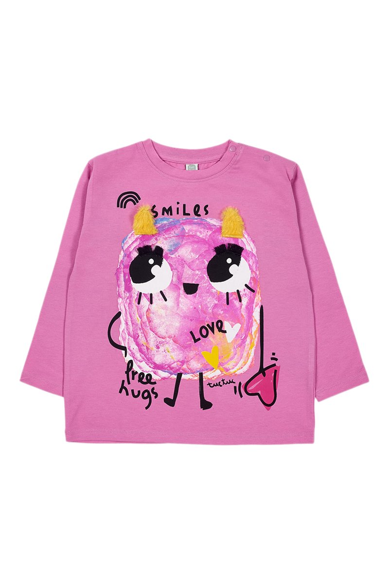 Lettrage, motifs fantaisie, empiècements en fourrure synthétique et logo devant.