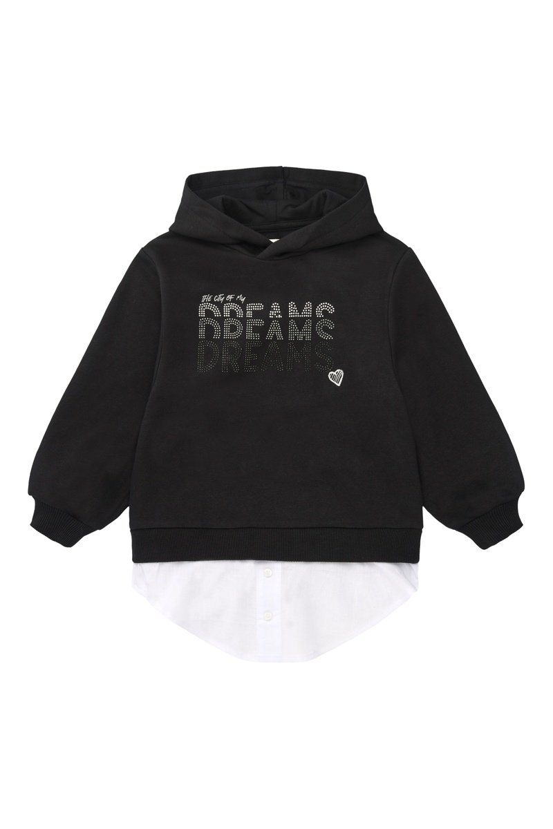 Lettrage, strass, boutons décoratifs et motifs cœur devant.