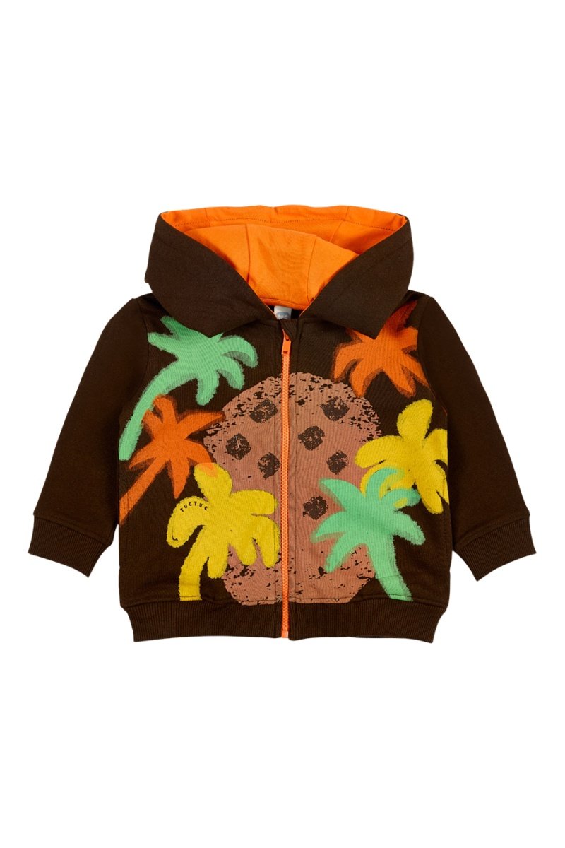 Motifs fantaisie su la capuche et devant.