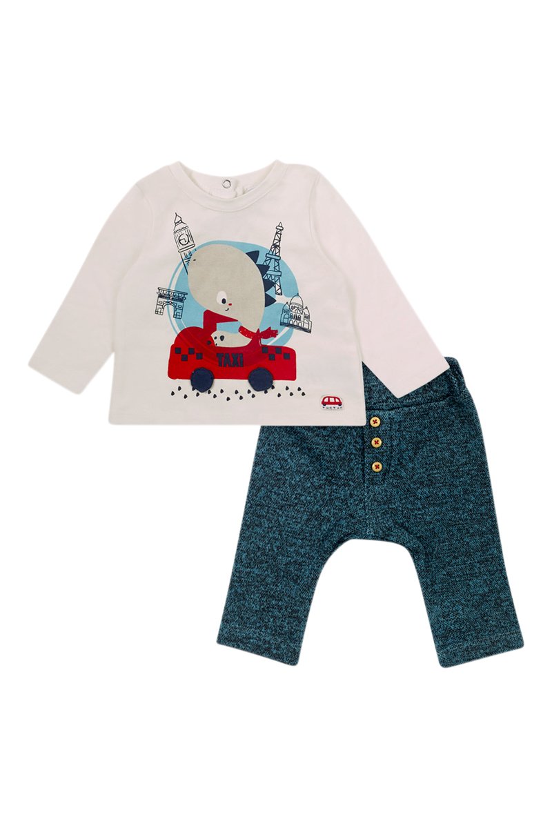 T-shirt et pantalon - Bleu pétrole chiné et gris clair