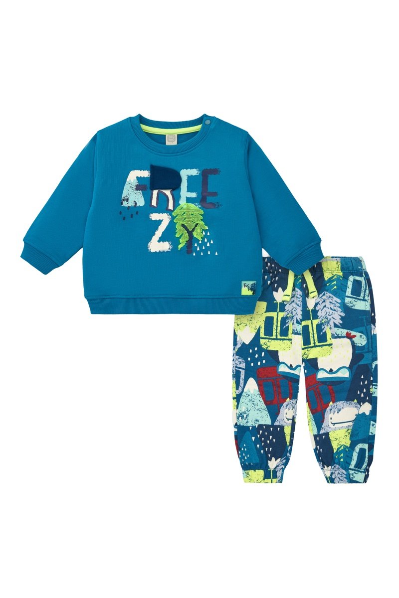 Lettrage, motifs fantaisie et empiècement avec logo devant.