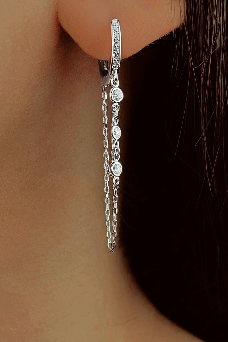Boucles d'oreilles pendantes en argent serties de zirconiums.