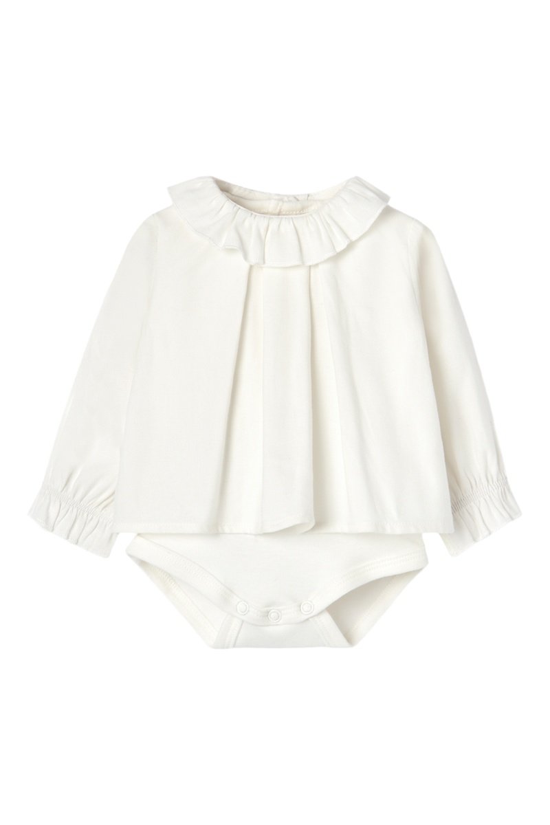 Fermeture boutonnée devant, pressionnée au dos et à l'entrejambe.
