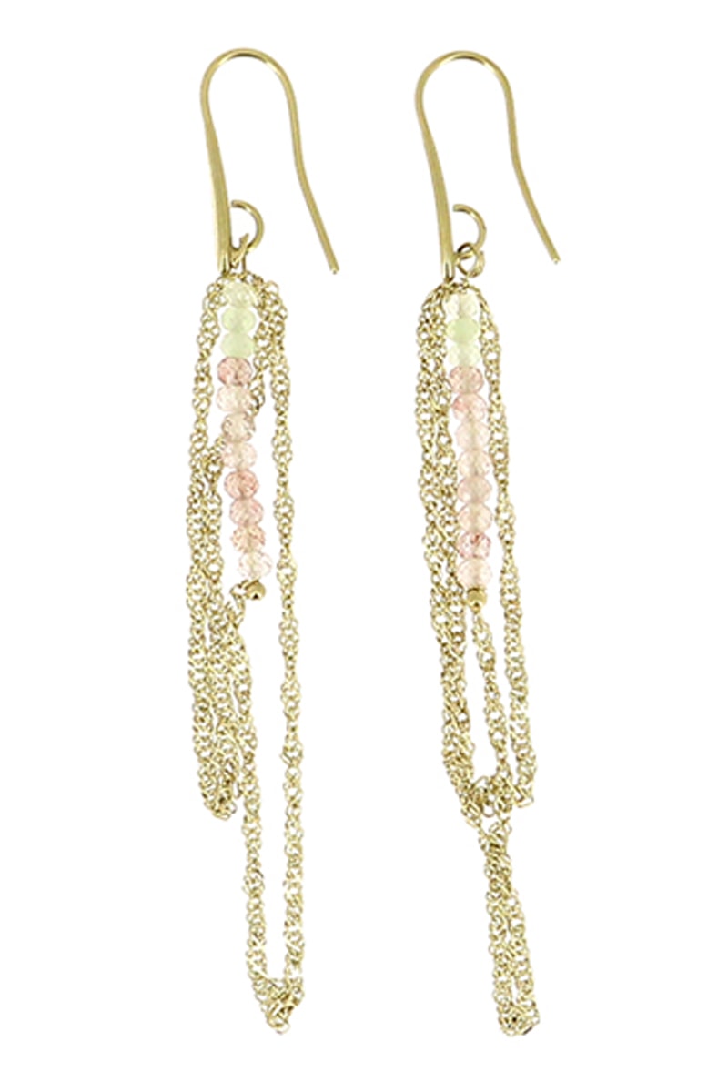 Boucles d'oreilles pendantes serties de calcites et de quartz.
