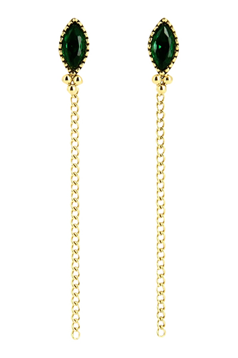 Boucles d'oreilles pendantes serties d'une émeraude.