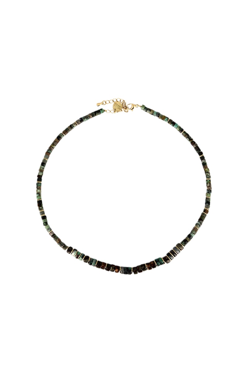 Matière : acier inoxydable, turquoises, hématites et bronzites