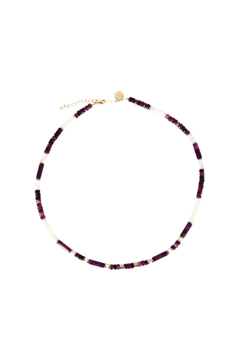 Matière : acier inoxydable, lépidolites, nacres et hématites