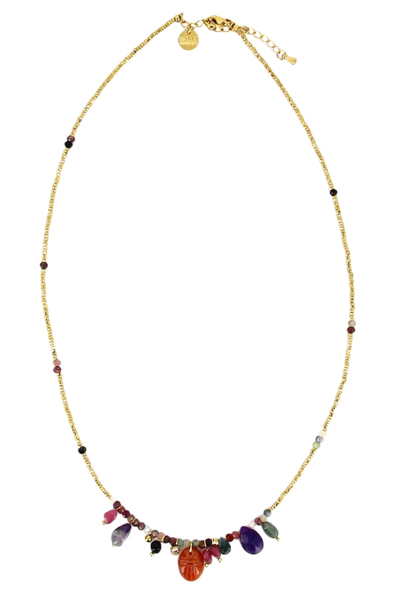 Collier serti d’hématites, de tourmalines et de cristaux.