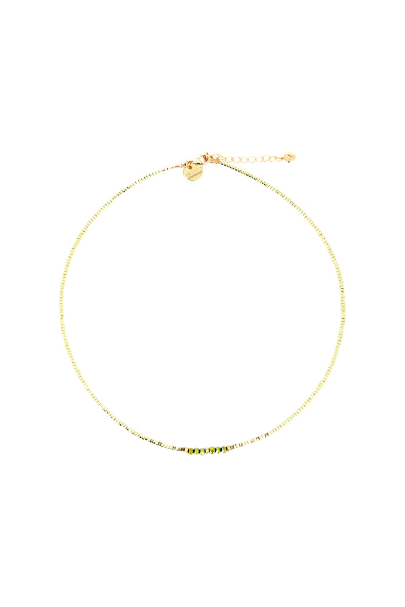 Collier doré à l’or jaune serti de 6 cristaux et de perles d'imitation.