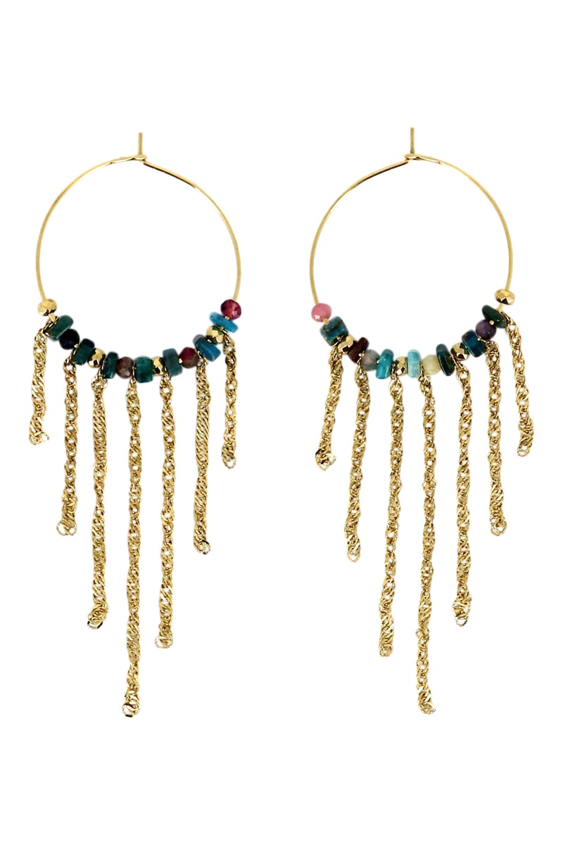 Créoles sertis de 4 hématites, 7 apatites et 4 tourmalines.
