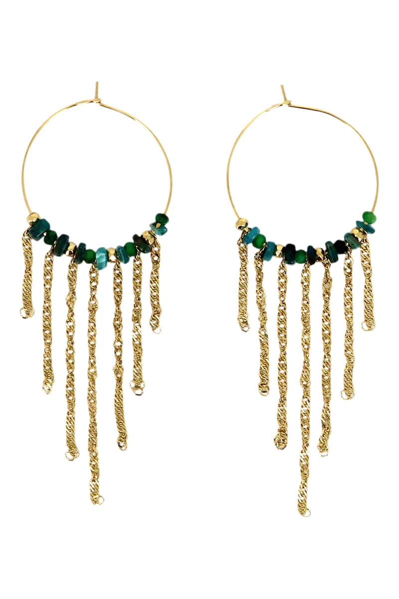 Créoles sertis de 4 hématites, 7 apatites et 4 œils-de-tigre.