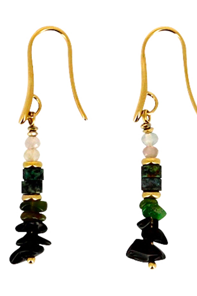 Boucles d’oreilles pendantes serties de turquoises et cristaux.