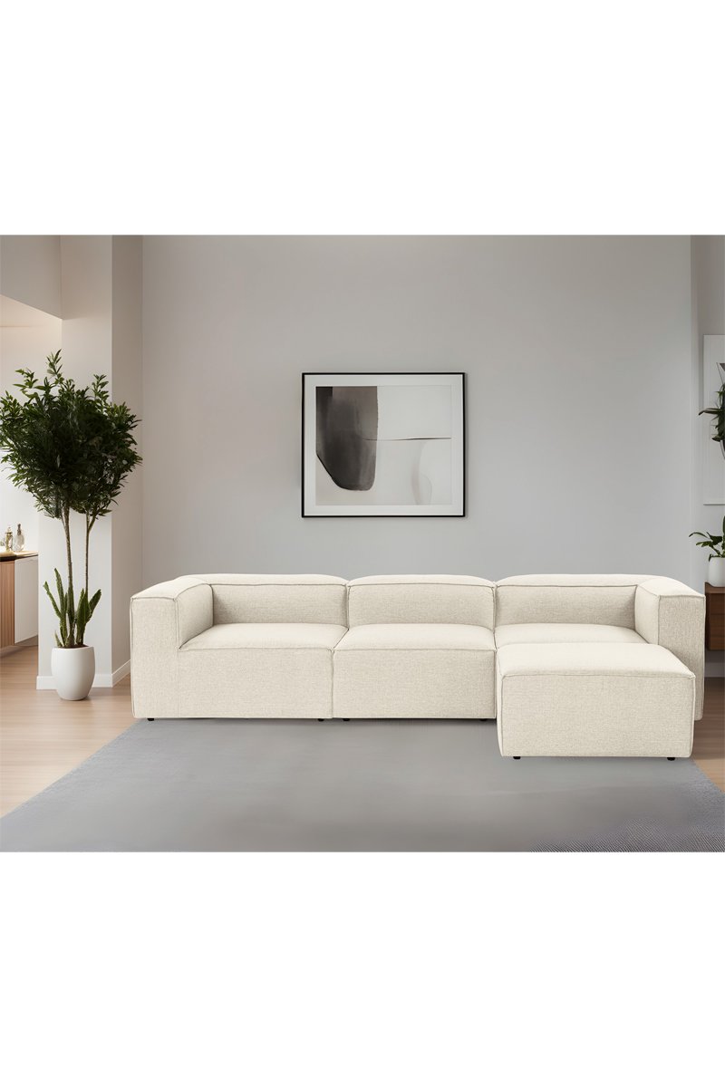 Canapé d'angle réversible en bois de charme - Écru - 3 à 5 places - Revêtement lin