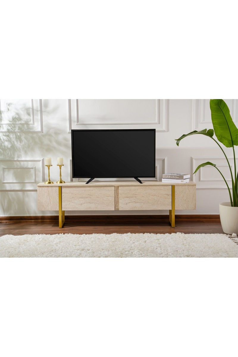 Meuble TV 2 abattants Serenity et doré - 180 x 45 x 30 cm