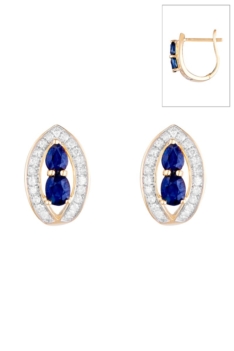 Boucles d'oreilles en or jaune serties de 23 diamants et de 2 saphirs.
