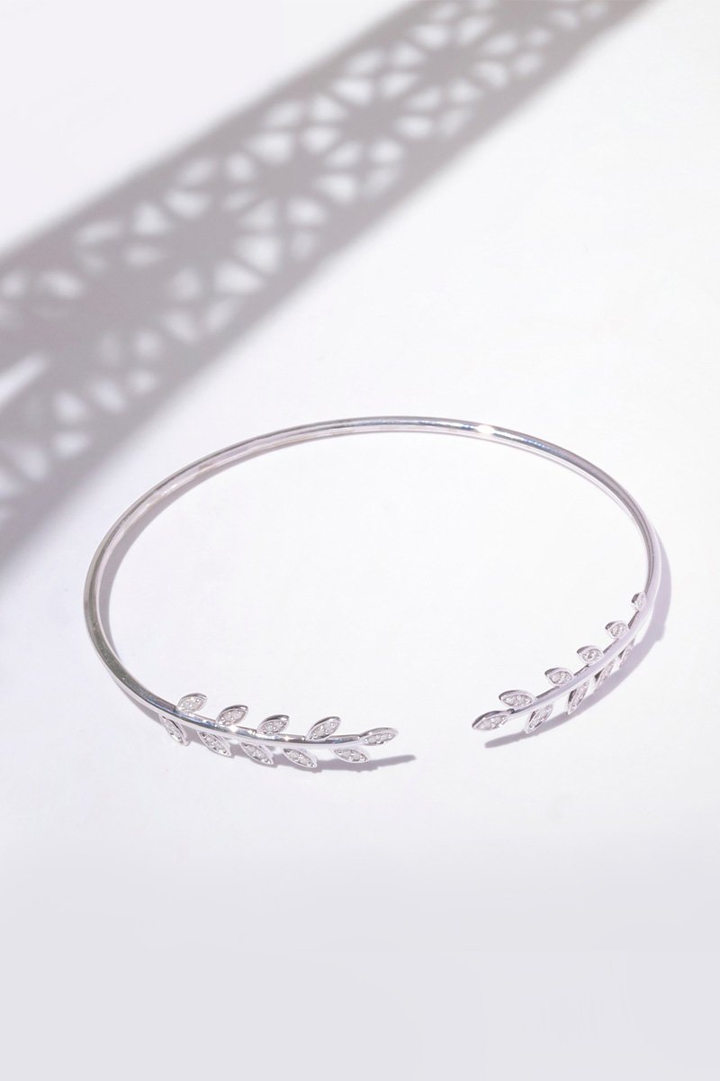 Jonc Comme une feuille - Or blanc et diamants
