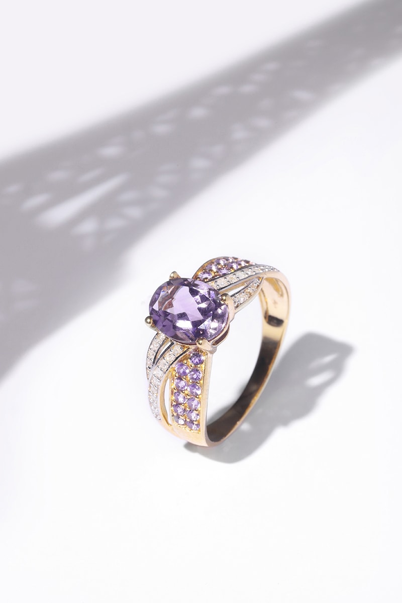 Bague Ballarat - Or jaune, diamants, et améthystes