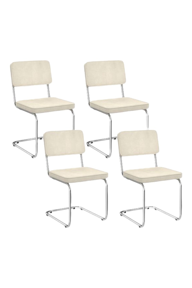 Chaises Naya en velours crème et pied métal cantilever - lot de 4