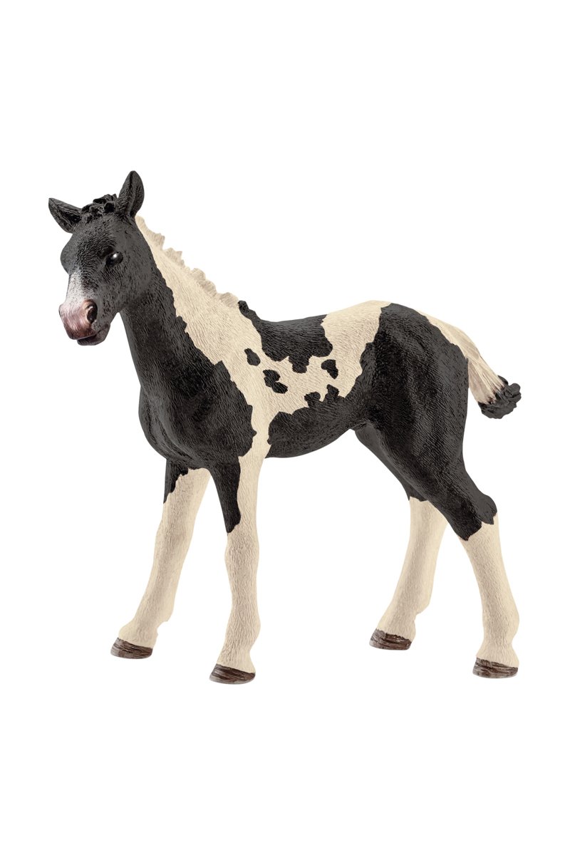 Le poulain Pinto peint à la main, possède la typique robe pie des chevaux Pinto.